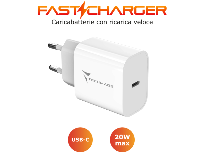 Techmade CARICABATTERIE 20W 1 PORTA USB-C FAST CHARGE (TM-381B)