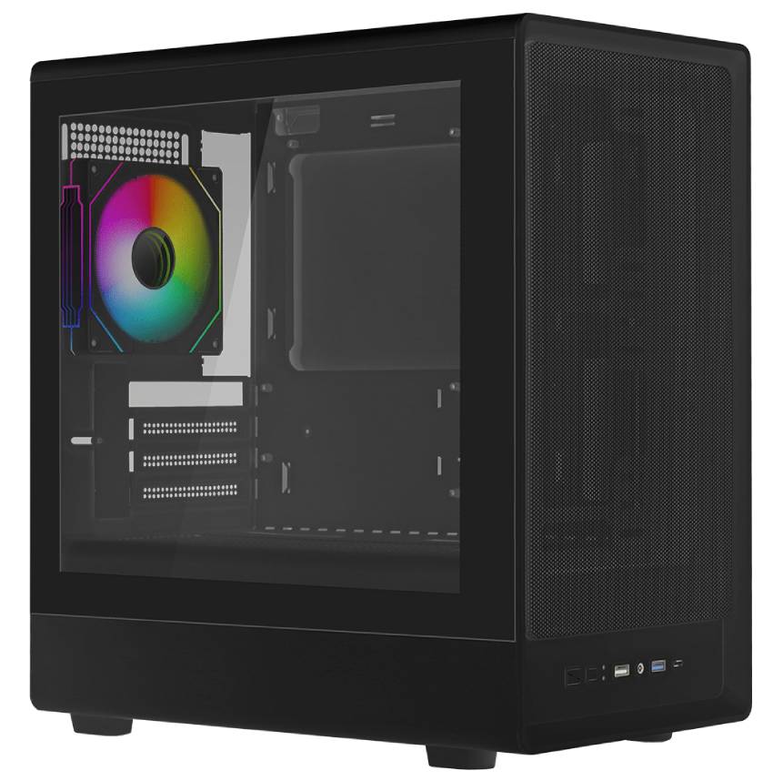 Il Noua Nexus PK200 è un case Micro-ATX dal design sobrio ed elegante, ideale per assemblaggi compatti e moderni. Il colore nero e il pannello laterale in vetro temperato valorizzano i componenti interni, mentre la ventola RGB inclusa garantisce un tocco estetico personalizzabile.