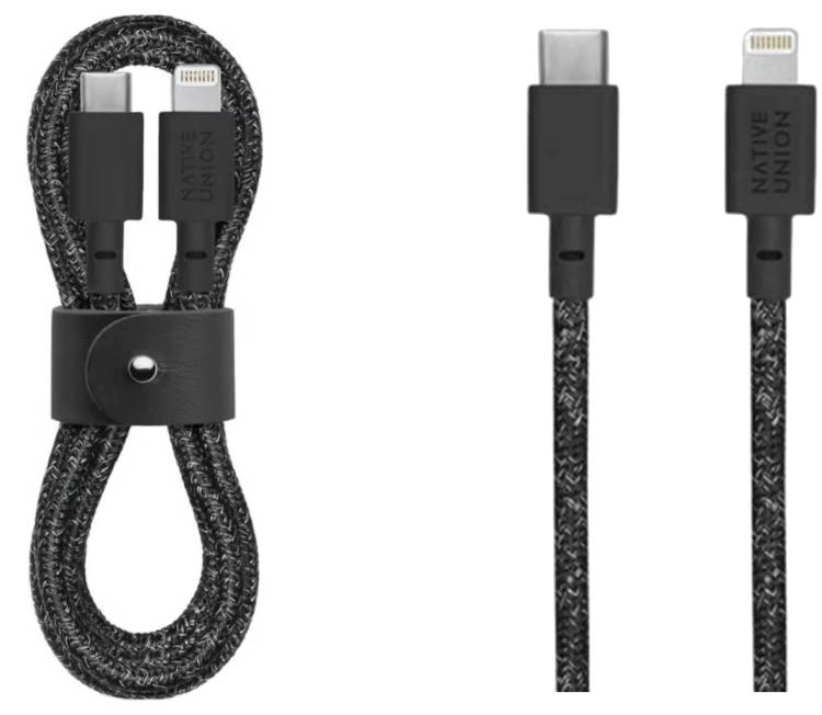 Il Native Union Belt Cable USB-C a Lightning (modello BELT-KV-CL-CS-BK-2, GTIN 4895200434788) è un cavo di ricarica e sincronizzazione progettato per dispositivi Apple con connettore Lightning. Grazie alla compatibilità con caricabatterie USB-C Power Delivery, consente una ricarica rapida degli iPhone compatibili, arrivando fino al 50% in meno di 30 minuti con alimentatori adeguati.