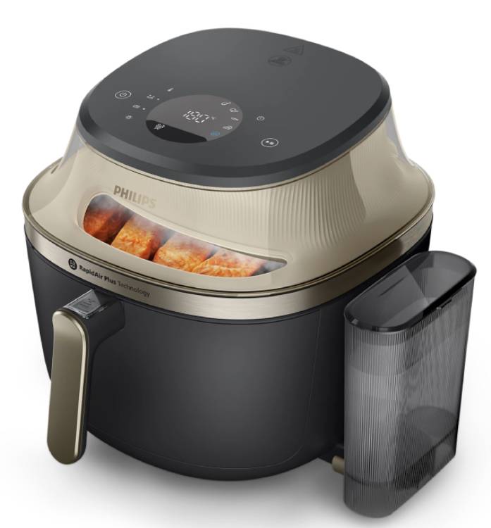 La funzione vapore con serbatoio separato permette di cucinare contemporaneamente con l’aria calda per una croccantezza perfetta e il vapore per una cottura più morbida e umida, come per il pesce, le verdure e altri piatti delicati. Con una capacità di 7,2L, può soddisfare le esigenze di tutta la famiglia o preparare grandi quantità di cibo.