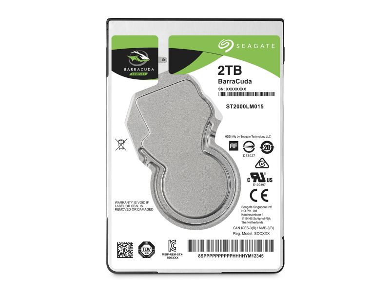 Seagate Barracuda 2.5". Capacità hard disk: 2 TB, Velocità di rotazione hard disk: 5400 Giri/min, Dimensione del buffer HDD: 128 MB, Dimensione hard disk: 2.5", Interfaccia: Serial ATA III