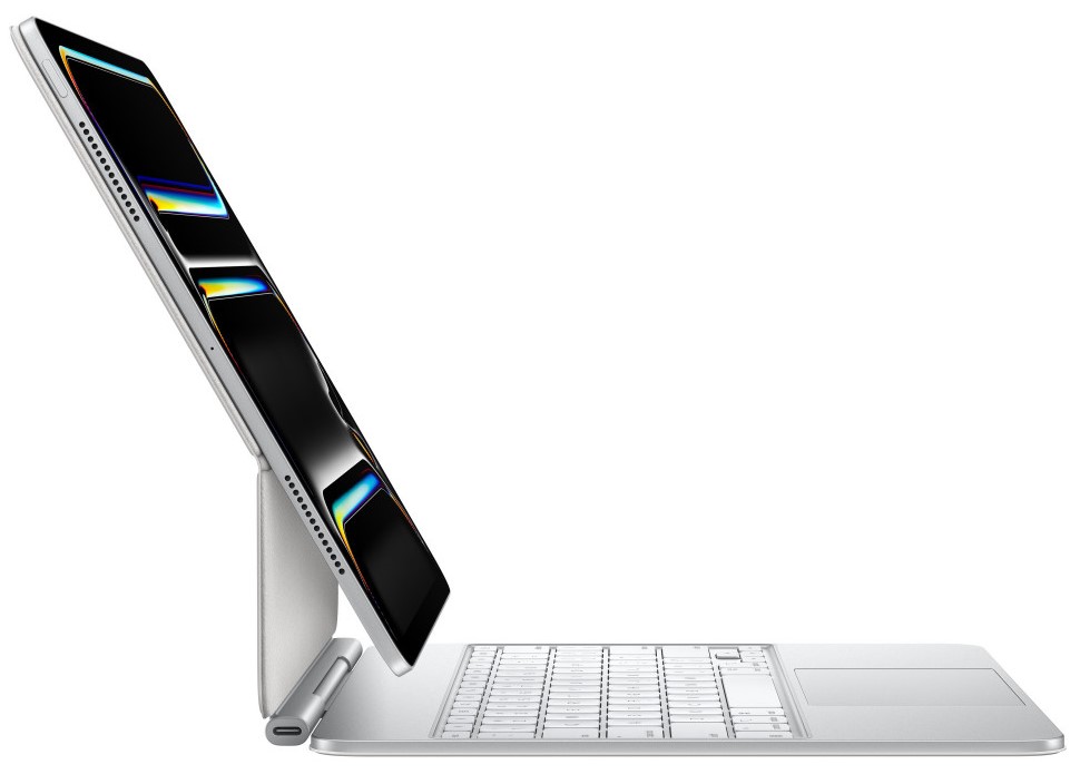 La Magic Keyboard per iPad Pro è una tastiera comodissima con trackpad integrato e con appoggio in alluminio per i palmi, dal design elegante e portatile.