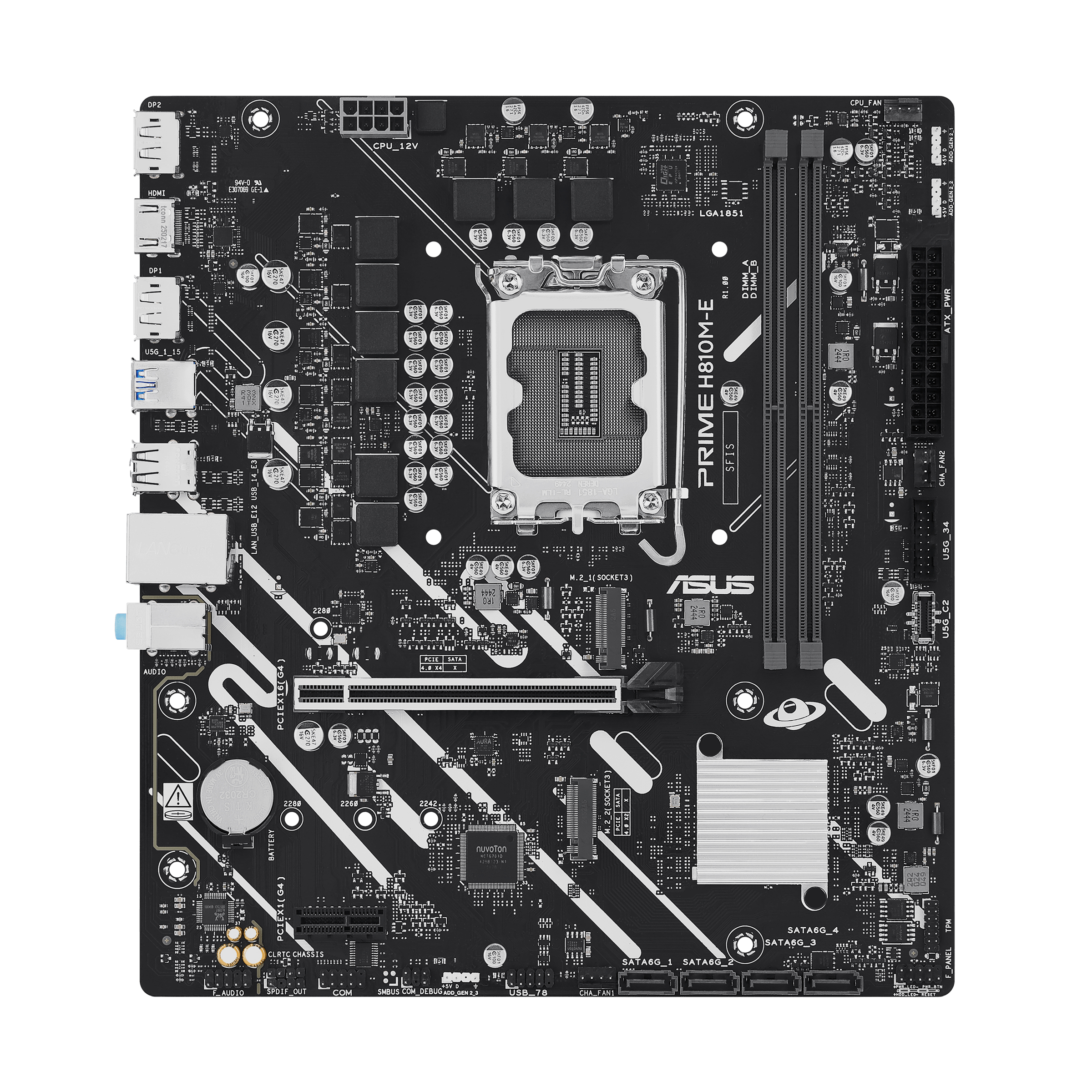 ASUS PRIME H810M-E-CSM. Produttore processore: Intel, Presa per processore: LGA 1851 (Socket V1), Processori compatibili: Intel Core Ultra (Series 2). Tipi di memoria supportati: DDR5-SDRAM, RAM massima supportata: 128 GB, tipo di slot di memoria: DIMM. Interfacce dell'unità di archiviazione supportate: M.2, SATA III, Tipi di unità di archiviazione supportate: HDD & SSD. Tipo di interfaccia Ethernet: Gigabit Ethernet. Componente per: PC, Fattore di forma scheda madre: micro ATX, Famiglia di chipset per scheda madre: Intel
