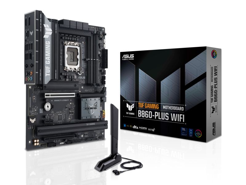 ASUS TUF GAMING B860-PLUS WIFI. Produttore processore: Intel, Presa per processore: LGA 1851 (Socket V1), Processori compatibili: Intel Core Ultra (Series 2). Tipi di memoria supportati: DDR5-SDRAM, RAM massima supportata: 256 GB, tipo di slot di memoria: DIMM. Interfacce dell'unità di archiviazione supportate: M.2, SATA III, Tipi di unità di archiviazione supportate: HDD & SSD, Livelli RAID: 0, 1, 5, 10. Tipo di interfaccia Ethernet: 2.5 Gigabit Ethernet, Wi-Fi standard: Wi-Fi 7 (802.11be), Standard Wi-Fi: Wi-Fi 7 (802.11be). Componente per: PC, Fattore di forma scheda madre: ATX, Famiglia di chipset per scheda madre: Intel