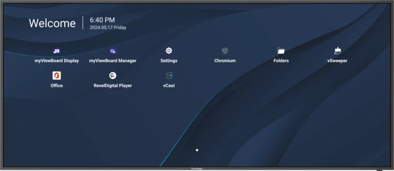 Viewsonic CDE105UW. Dimensioni diagonale schermo: 2,67 m (105"), Area di lavorazione: 2449,92 x 1033,56 mm, Luminosità schermo: 500 cd/m². Sistema operativo incluso: Android, Architettura processore: ARM Cortex A76 + ARM Cortex A55, RAM massima supportata: 128 GB. Potenza altoparlante: 20 W, Potenza RMS subwoofer: 2 W. Colore del prodotto: Nero, Panel mounting interface 24/5000 Interfaccia per montaggio a pannello: 1000 x 600 mm, Lunghezza cavo d'alimentazione: 3 m. Consumi: 405 W, Tensione di ingresso AC: 100 - 240 V