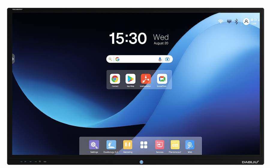 Il DabliuTouch L1R-148A è il modello di punta della serie L1R PRO di Wacebo Europe, un monitor interattivo da 86” 4K UHD pensato per grandi spazi didattici, sale conferenze e ambienti aziendali di rappresentanza. Equipaggiato con Android™ 14 certificato Google EDLA, consente l’accesso diretto al Play Store e alle principali app di collaborazione e comunicazione, come Meet, Zoom, Teams o Classroom.