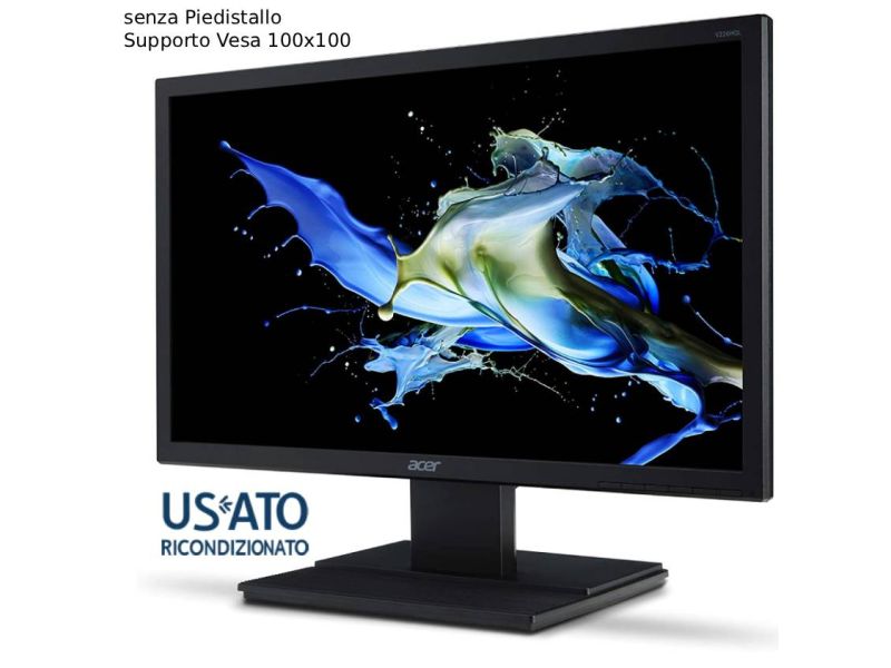 Monitor rigenerato Acer V226HQLBBD 22" Full HD VGA/DVI Senza Piedistallo supporto Vesa 100x100 colore Nero