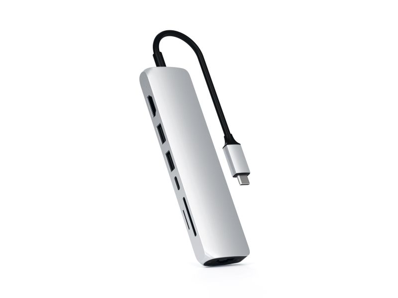 Satechi Schlanker Typ C Multi-Port Adapter V2 aus Aluminium mit 4K HDMI (30Hz), MicroSD/SD-Kartenlesern und USB 3.0 (Silver)