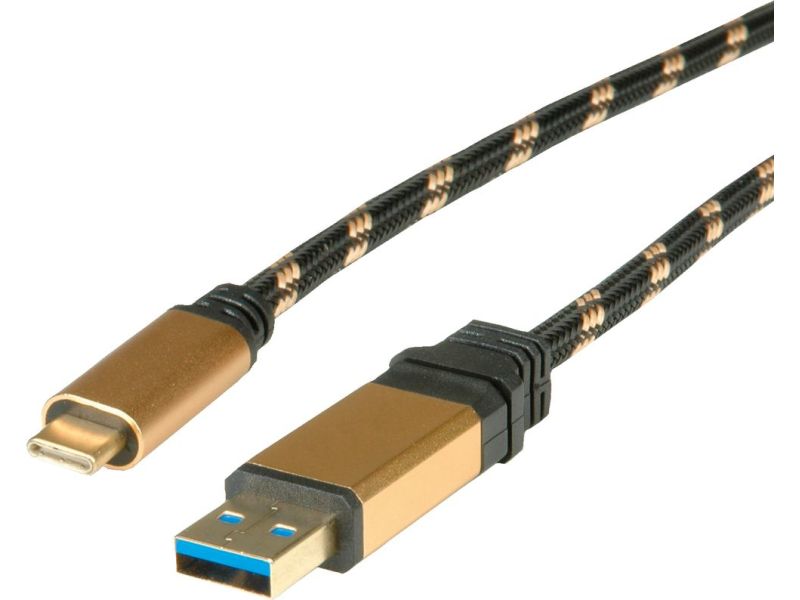 ROLINE USB 1m cavo USB USB 3.2 Gen 2 (3.1 Gen 2) USB A USB C Nero, Oro