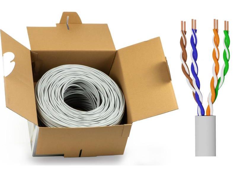 Bobina cavo di rete Matassa 305mt non schermato UTP cat5E sezione awg23 lszh Classe EC supporta reti Poe e Poe+