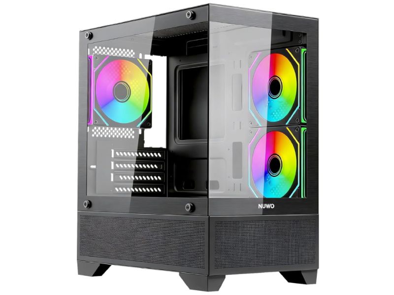 Case Tower Nuwo Flow FK100 Micro-ATX Senza Alimentatore con 3 Ventole ARGB Incluse e Pannello Laterale in Vetro Temperato colore Nero