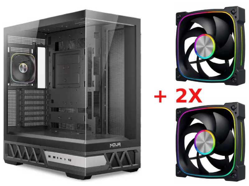 Case Mid-Tower Micro-ATX Noua Vision ZK100 senza Alimentatore colore Nero con Pannello in Vetro Temperato e due ventole VIBE K21 120 ARGB in bundle