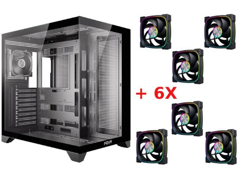 Case PC Noua Vision ZK300 ATX Mid Tower con vetro temperato 1x Fan ARGB 2x USB3.0/2.0 con 6 Ventole Lips Black 120 ARGB in Bundle
