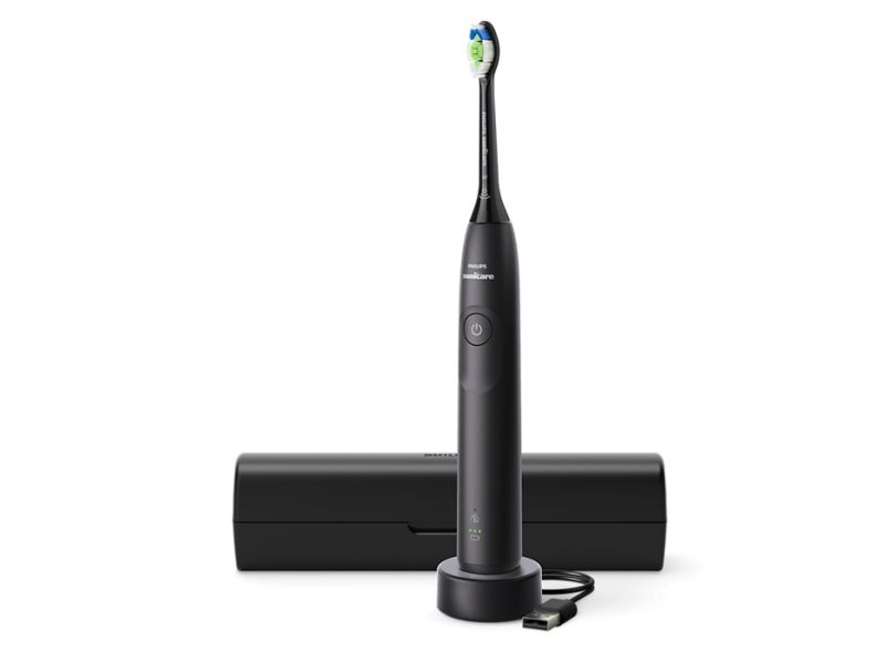 Philips Sonicare serie 5300 Spazzolino elettrico sonico con base di ricarica, 2 livelli intensità, sensore di pressione colore nero HX7101/02