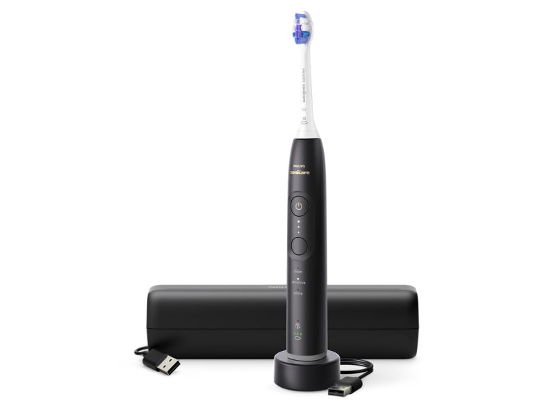 Philips Sonicare serie 5300 Spazzolino Elettrico Sonico con base di ricarica e custodia, 2 livelli di intensità, sensore di pressione confezione da 1 spazzolino bianco e 1 spazzolino nero HX7109/01