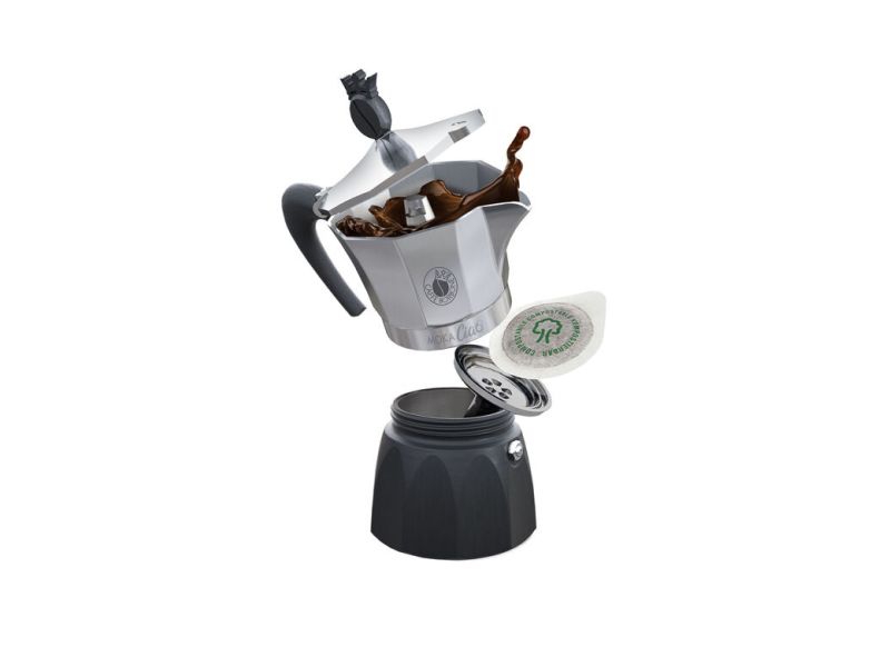 Macchina del Caffé Borbone MokaCiao Bicolore fino a 3 caffé con 15 cialde in dotazione la tradizionalità della Moca accoglie ora le cialde ese44 solo per fornelli a Gas