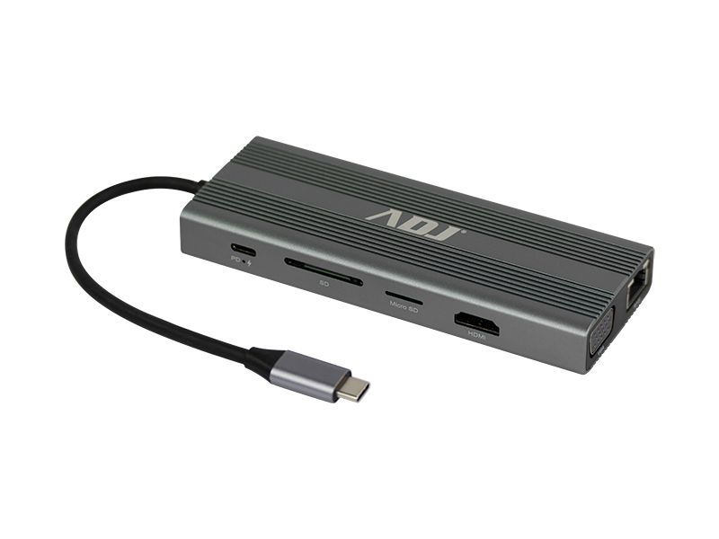 Hub HB310 Dock Type-C 12 in 1 ADJ - Porta audio 3.5mm, Porta di trasmissione dati USB-C 5Gbps, 2 x USB 3.0 Tipo A 5Gbps, 2 x USB 2.0 Tipo A 480Mbps, Porta LAN RJ45 1Gbps, Porta VGA 1080p/60Hz, Porta d...