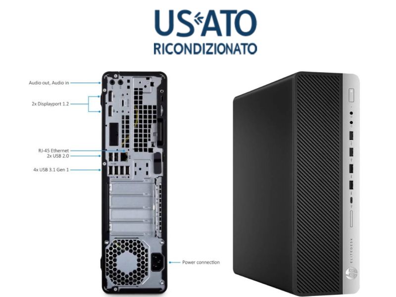 Pc rigenerato HP EliteDesk 800 g3 SFF cpu Intel i5-7500 ram 8gb ssd 240gb Windows 10 Professional colore Nero