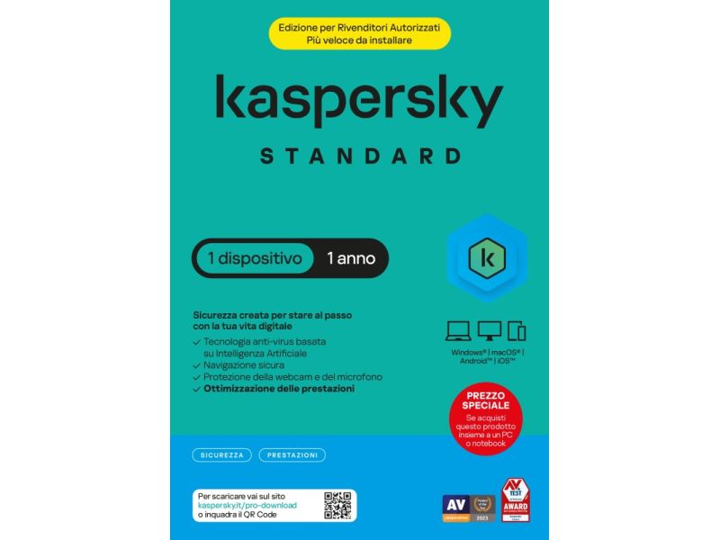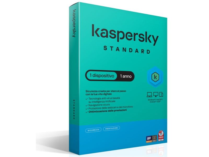 Kaspersky Standard Sicurezza antivirus Full licenza elettronica (attach) 12 mesi per 1 device SuperSlim Box