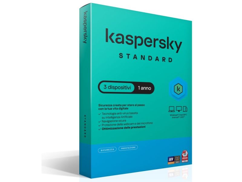 Kaspersky Standard Sicurezza antivirus Full licenza 12 mesi per 3 device SuperSlim Box