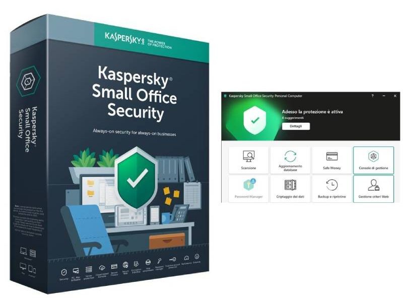 Kaspersky Small Office Security Sicurezza antivirus Full 1 licenza 12 mesi per un utenza Admin con gestione centralizzata fino a 5 dispositivi tramite console