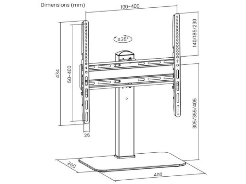 Supporto TV universale da tavolo da 37" a 70" Vesa 600X400 per 1 Monitor max.40kg