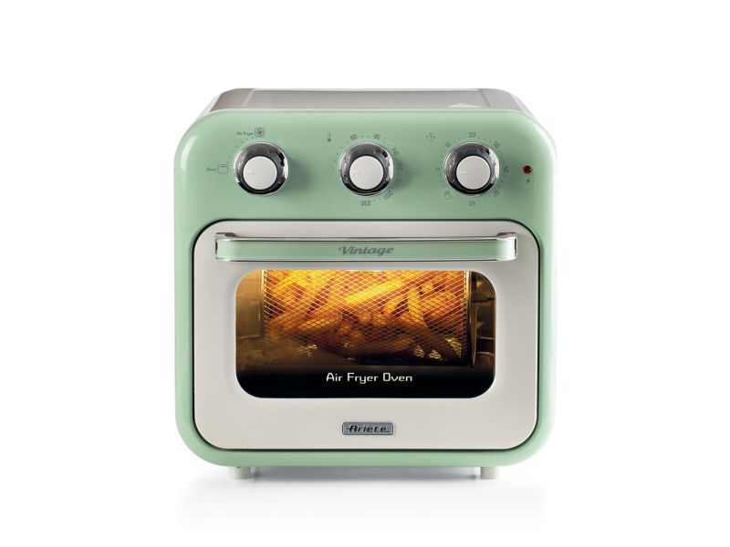 Ariete 4632 Friggitrice ad aria e forno Vintage, 1400W, 2in1, Capacità 16L, Accessori inclusi, Timer 60 minuti, Doppio vetro, Verde