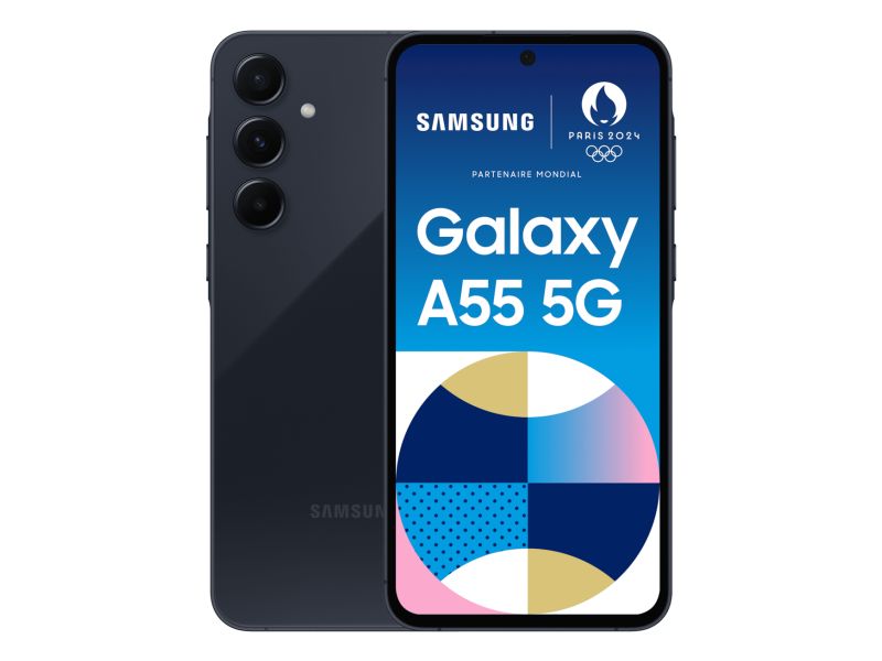 Samsung Galaxy A55 5G . Dimensioni diagonale schermo: 16,8 cm (6.6"), Risoluzione del display: 1080 x 2340 Pixel. Frequenza del processore: 2 GHz, Famiglia processore: Samsung Exynos. Capacità della RAM: 8 GB, Capacità memoria interna: 128 GB. Risoluzione fotocamera posteriore (numerico): 50 MP, Tipo di fotocamera posteriore: Tripla fotocamera. Capacità della scheda SIM: Dual SIM ibrida. Capacità della batteria: 5000 mAh. Colore del prodotto: Blu marino. Peso: 213 g