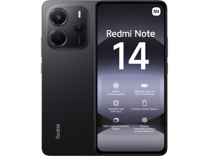 Xiaomi Redmi Note 14. Dimensioni diagonale schermo: 16,9 cm (6.67"), Risoluzione del display: 2400 x 1080 Pixel. Famiglia processore: MediaTek, Modello del processore: Helio G99 Ultra. Capacità della RAM: 6 GB, Tipo di RAM: LPPDDR4X, Capacità memoria interna: 128 GB. Risoluzione fotocamera posteriore (numerico): 108 MP, Tipo di fotocamera posteriore: Tripla fotocamera. Capacità della scheda SIM: Dual SIM ibrida. Capacità della batteria: 5500 mAh. Colore del prodotto: Nero. Peso: 196,5 g
