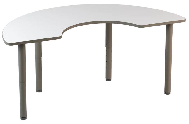 Il Delta è un tavolo a semicerchio pensato per ospitare fino a quattro persone in totale comfort: ideale per didattica collaborativa, lavori di gruppo e setting modulari. Il piano in MDF bianco sp. 25 mm con bordo arrotondato in poliuretano grigio offre un appoggio sicuro e confortevole durante l’uso quotidiano.