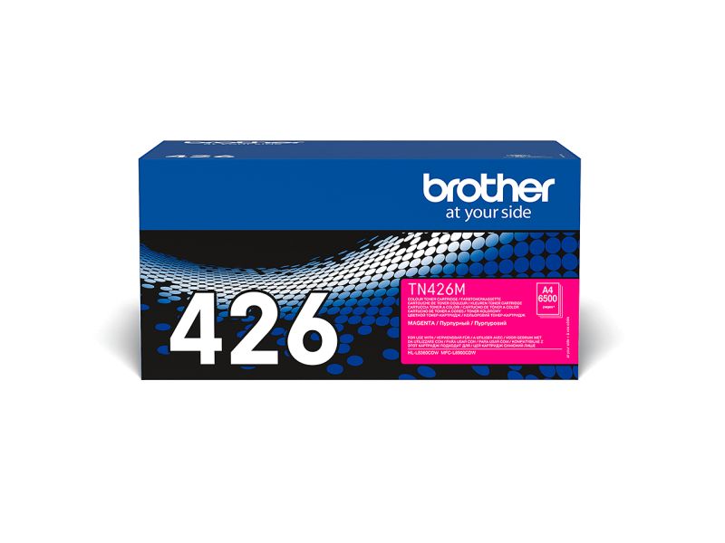 5 validi motivi per scegliere l’originale. 1. Garantire elevate prestazioni Dispositivo e materiale di consumo originali sono progettati per lavorare in perfetta sinergia: per fare in modo che ogni stampa sia perfetta, la prima quanto l’ultima 2. Qualità della stampa La tecnologia a cera dei toner consente la produzione di stampa di qualità professionale 3. Durabilità della stampa fino a 4 volte in più* Dai test effettuati è risultato che i documenti stampati utilizzando materiale di consumo originale durano 4 volte di più* rispetto all’utilizzo di materiale compatibile *di altre polveri - test effettuati nei laboratori Brother 4. Risparmio di tempo e denaro L’utilizzo di materiale non originale può causare danni dovuti alla fuoriuscita di polvere di toner, e causare la perdita della garanzia del produttore 5. Minor impatto ambientale La conformità alle normative ambientali europee garantisce un minor impatto ambientale dei nostri materiali di consumo Per scoprire altri vantaggi clicca qui. Progettato per garantire la massima affidabilità, il toner magenta originale Brother TN-426M è stato sviluppato per creare documenti monocromatici ad alta risoluzione, dalla prima all'ultima stampa. Utilizzabile con MFC-L8900CDW e HL-L8360CDW.