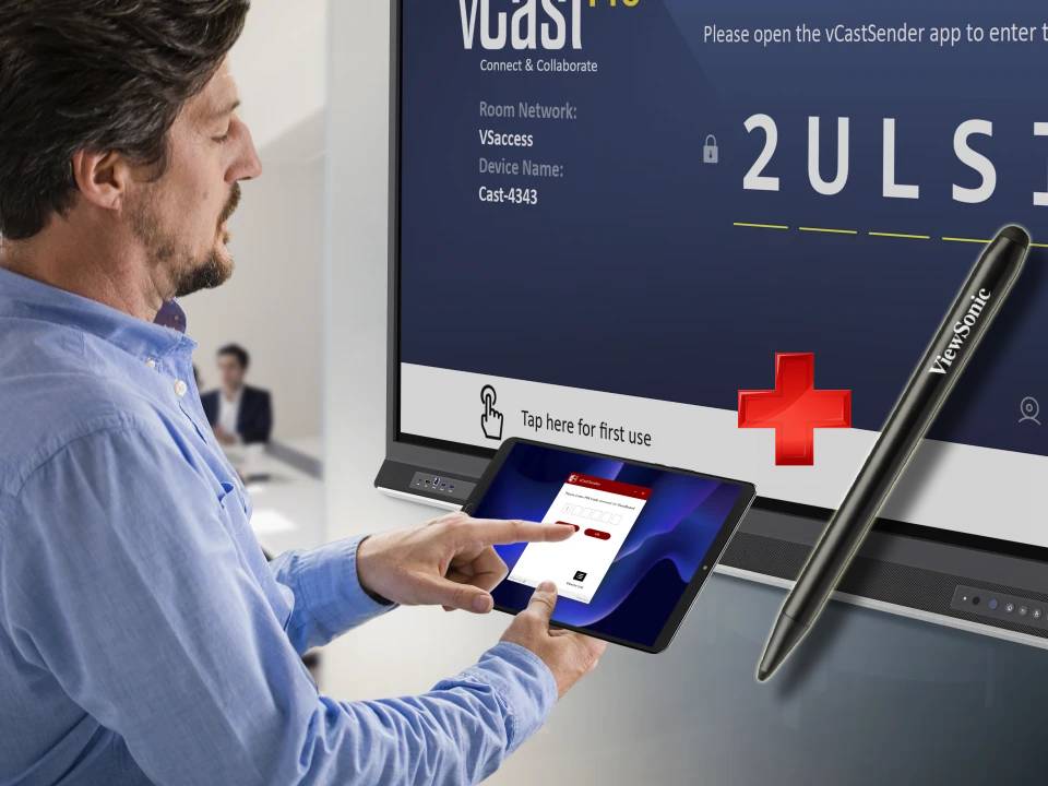 Grazie a vCast la collaborazione e la condivisione di contenuti sul grande display interattivo ViewBoard è più facile che mai.